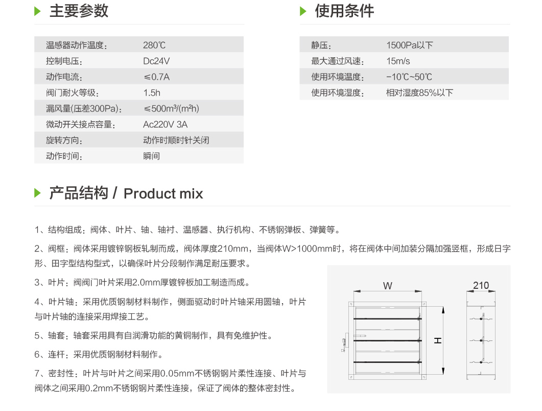 排烟防火阀安装在机械排烟系统的管道上,平时呈开启状态,火灾时当排烟管道内烟气温度达到280℃时关闭,在一定时间内能满足漏烟量和耐火完整性要求,起隔烟阻火作用的阀门。