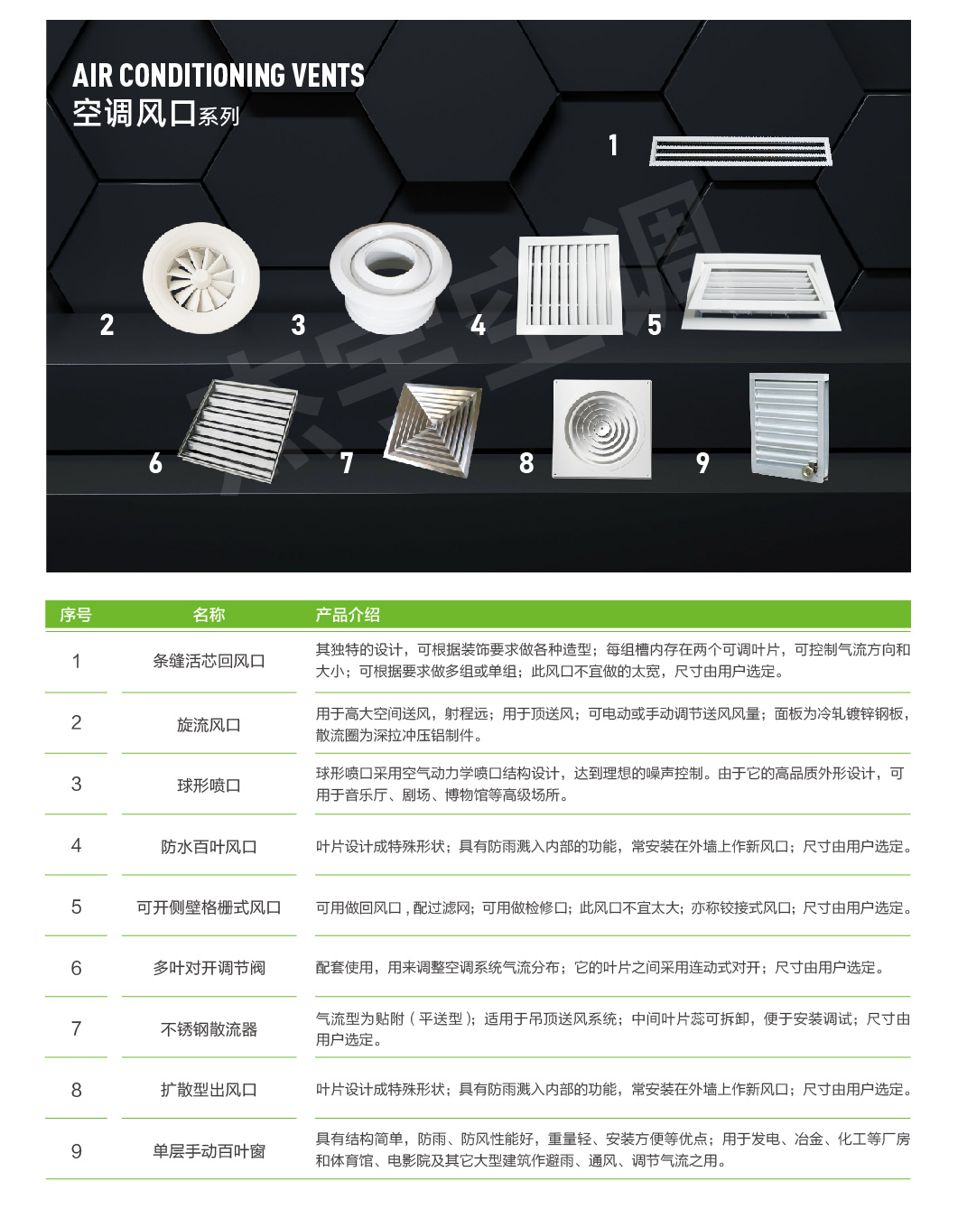 球形喷口采用空气动力学喷口结构设计,达到理想的噪声控制。由于它的高品质外形设计,可用于音乐厅、剧场、博物馆等高级场所。