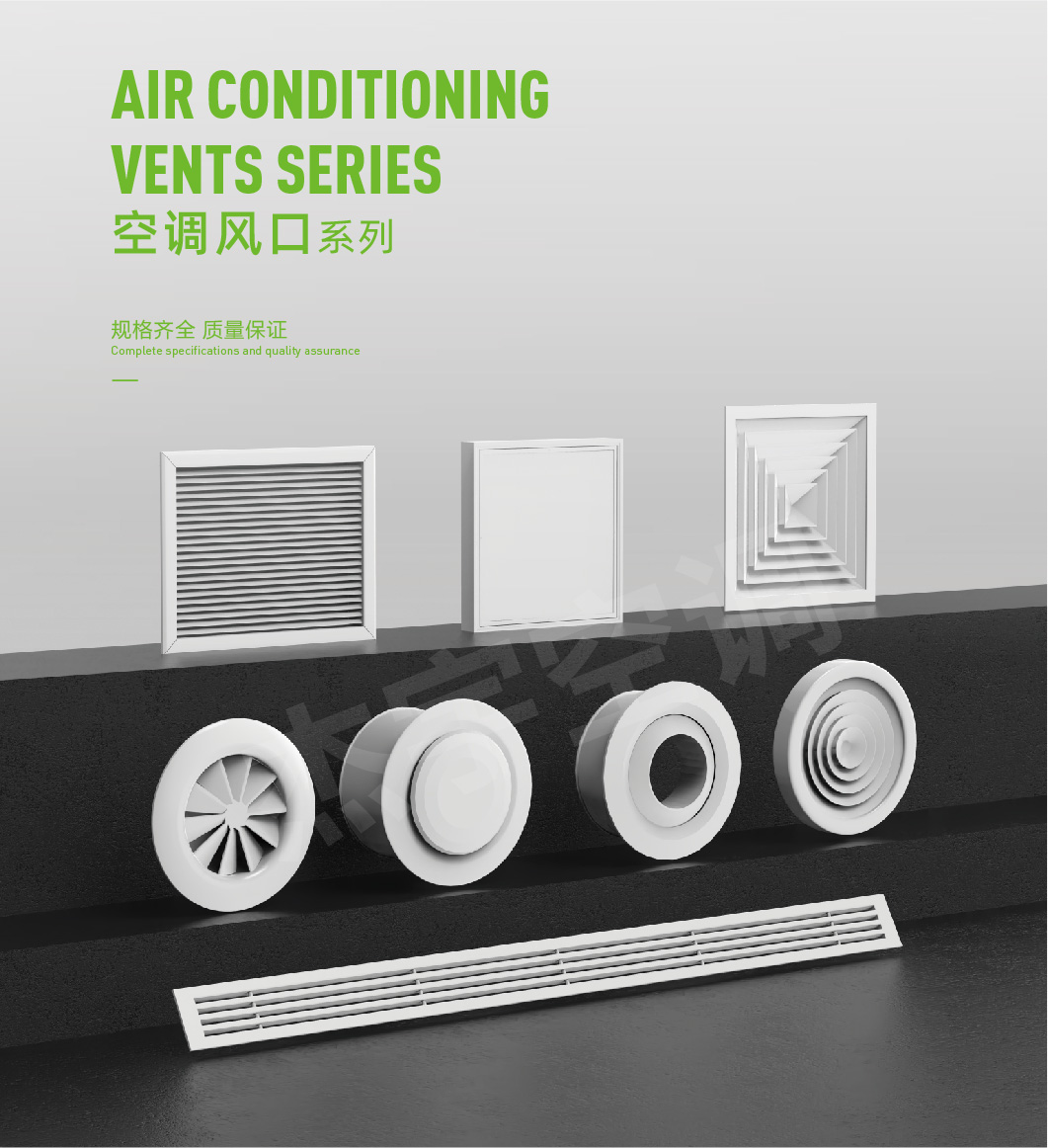 叶片设计成特殊形状;具有防雨溅入内部的功能,常安装在外墙上作新风口;尺寸由用户选定。