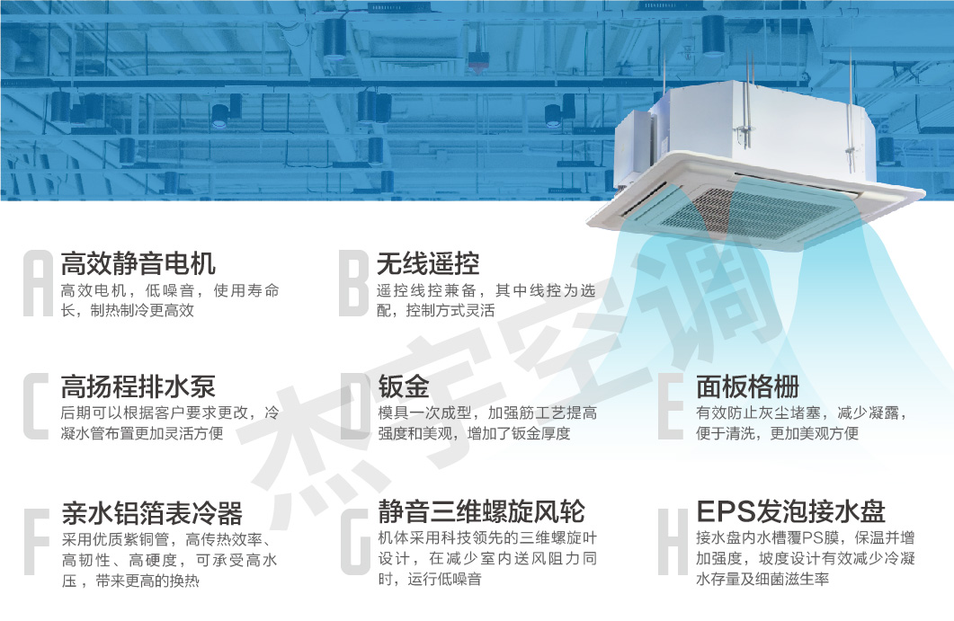 360°广角送风,气流均匀送达房间各个角落,出风柔和,舒适度更高; 特有高、中、低3档风速设计,针对不同安装高度,可设定相应的送风档,轻松满足不同安装高度的送风需求。